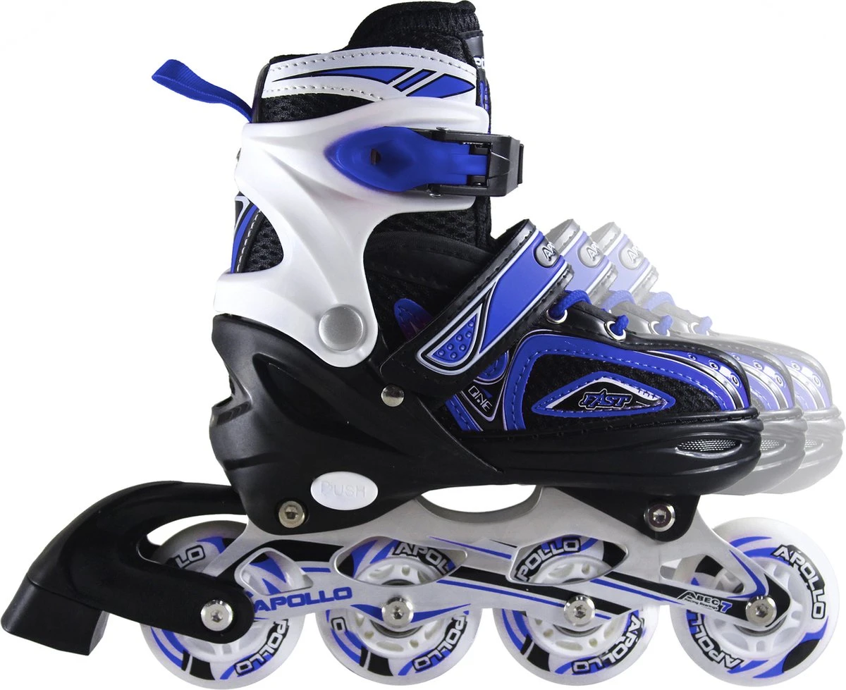 Apollo Super Blades X Pro Inlineskates De Apollo skeelers zijn perfect geschikt voor alle sportliefhebbende kinderen, tieners en volwassenen. Ideaal voor beginners en gevorderden. Maat verstelbaar: Schoengrootte 31 – 42 Lagers: ABEC 7 High Rebound wielen: Ø 70mm PU Wheels Hardheid wielen: 82A Bovenmateriaal: PU en Mesh PP hoge impact schaal en enkelband In maat verstelbaar in 4 groottes met 1 KLICK SYSTEM Met een druk op de knop is de maat met 4 groottes te verstellen, waarbij de softboot naar voren getrokken wordt. Zo zijn de skates flexibel en kunnen door uzelf op de schoenmaat worden aangepast. Ideaal voor schoenmaten van 31 tot 42 (S/M/L) Apollo Funsports Geboren in de trendy wijk, vandaag rijden onze steps, longboards, rolschaatsen en inlineskates over de hele wereld. Apollo is het professionele plezier sportmerk, met de beste materialen en een kwalitatief hoogwaardige productie voor optimale rij-eigenschappen. Wij leveren “D2C” = “Direct-to-Consumer”. U koopt dus rechtstreeks van de fabrikant. Apollo – Ride it your Way! ONZE SOCIALE BETROKKENHEID In Duitsland en op de gehele wereld zijn er veel ouders, kinderdorpen en andere faciliteiten die hun kinderen geen speelgoed zoals bijvoorbeeld longboards kunnen geven. Daarom ondersteunen wij in samenwerking met Soroptimist International Köln verschillende hulpprojecten met onze boards, speelgoed en andere producten die we kosteloos ter beschikking stellen. Apollo inlineskates zijn licht en stevig ideaal voor alle sportliefhebbende kinderen De veiligheidsgesp, Power Strap klittenbandsluiting en veters van de rolschaatsen zorgen voor een veilige grip hoogwaardige High-Rebound wielen (70mm/82A) en ABEC 7 lagers