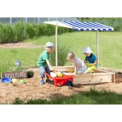 Zelfs op zeer zonnige dagen kun je uren spelen in je mooie Sand box. Het dak beschermt u tegen de hete zon en zorgt voor koele schaduw.