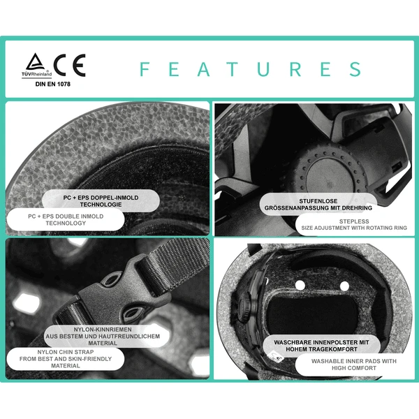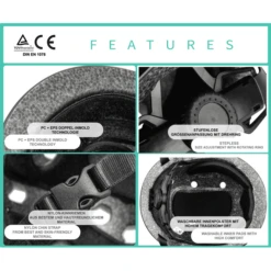 - Dankzij de functies blijft de helm stevig op het hoofd zitten en altijd in de juiste positie.