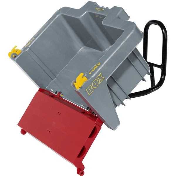 De nieuwe rollyBox is een kantelbare transportbox die op de aanhangerkoppeling van de trekker wordt geschoven. Voor het kiepen kan de achterzijde op twee verschillende manieren worden geopend, zodat het net zo geschikt is voor het vervoer van bulkgoederen als voor alle andere denkbare goederen die het gevolg zijn van de kinderspelletjes.