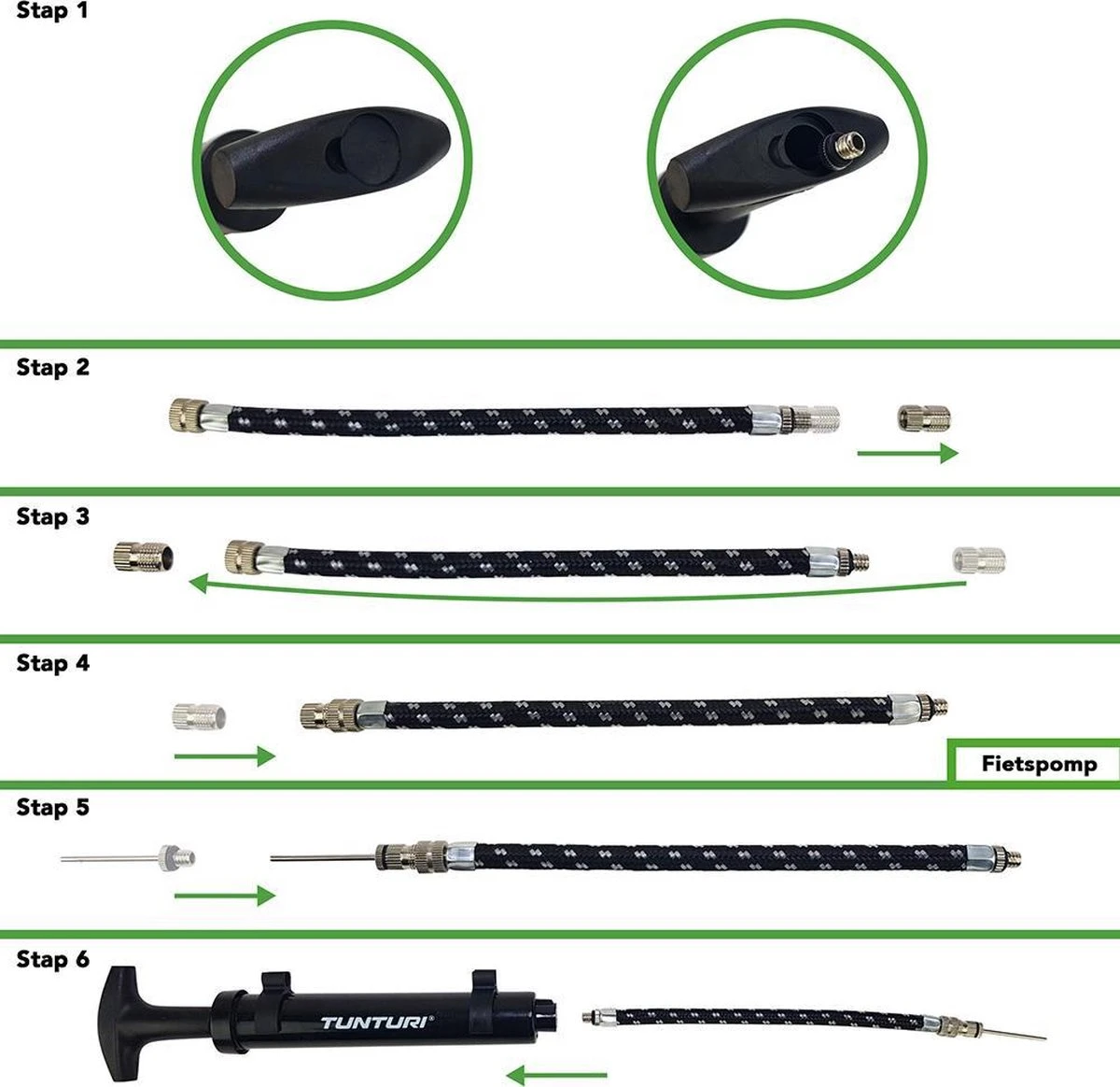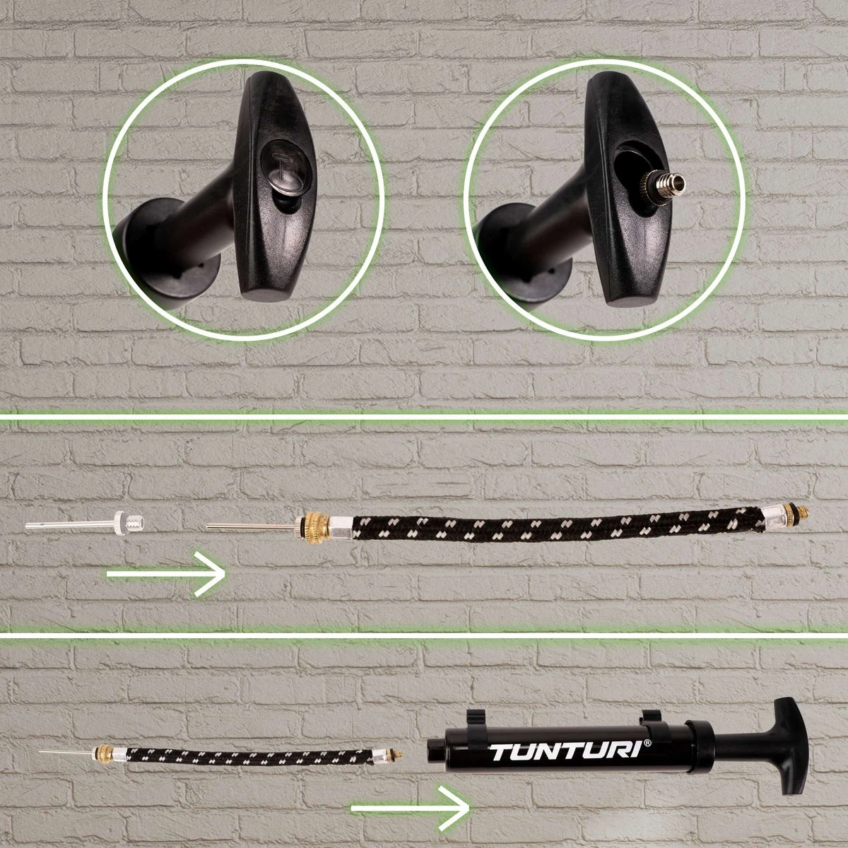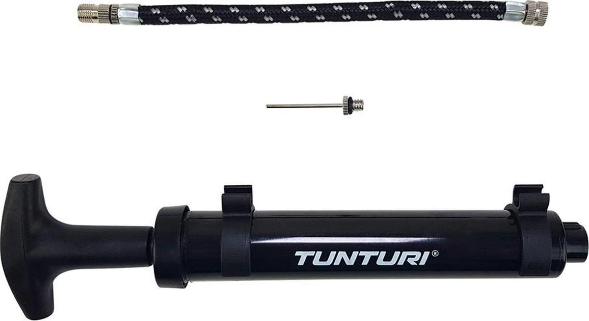 Eén pomp voor alles: ballen en fietsbanden. Deze Tunturi Double Action Balpomp is praktisch, compact en licht.