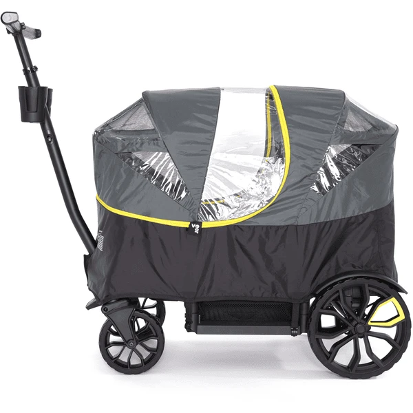 Dankzij de verschillende componenten kan de regenhoes gebruikt worden in combinatie met één of twee zonnekappen. Een hoes voor de VEER-achtertas is ook inbegrepen (de achtertas is apart te koop in onze winkel).